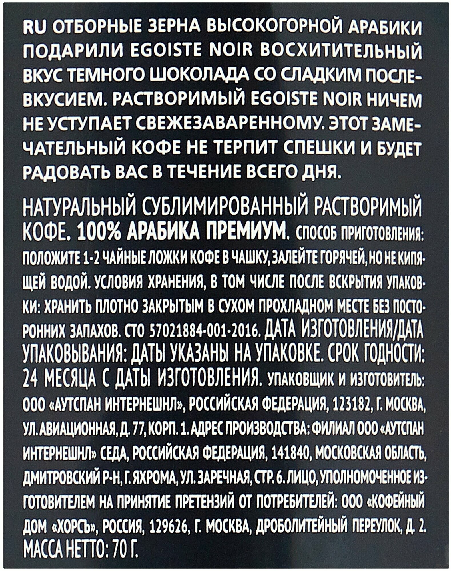 Купить EGOISTE Кофе растворимый Noir, сублимированный, 70 г с доставкой по всей России. EGOISTE Кофе растворимый Noir, сублимированный, 70 г: сравнение цен, характеристики, фото, актуальное наличие и цены.