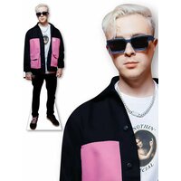 Ростовая фигура Егора Крида 11 представляет собой картонную куклу в полный рост 180 см и шириной 60 см. Фигура выполнена в коричневом, лиловом и светло-розовом цветах, что придает ей яркость и индивидуальность.