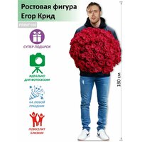 Ростовая фигура "Егор Крид" представляет собой картонную фигуру в полный рост, достигающую 180 см в высоту и 60 см в ширину. Это отличный выбор для создания неповторимой атмосферы праздника и оригинального фото.