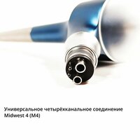 - Под универсальное четырёхканальное соединение Midwest 4 (M4). Вам не потребуется никаких дополнительных переходников. Соединяется напрямую с турбинным шлангом установки.