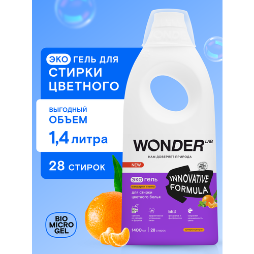 Купить Эко гель для стирки цветного белья WONDER LAB, гипоаллергенный гель с ароматом мандарина и мяты, 1400 мл с доставкой по всей России. Эко гель для стирки цветного белья WONDER LAB, гипоаллергенный гель с ароматом мандарина и мяты, 1400 мл: сравнение цен, характеристики, фото, актуальное наличие и цены.
