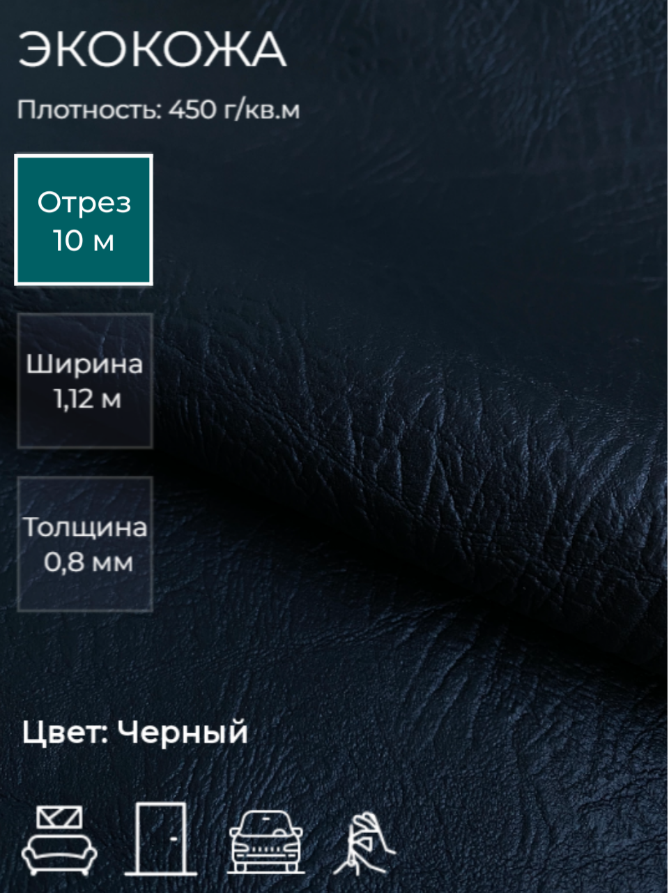 Экокожа или искусственная кожа для рукоделия, мебели, двери, интерьера. Отрез 10м, Ширина 1,14м, Плотность 450 г/м2. Цвет: Черный: сравнение цен, характеристики, фото, актуальное наличие и цены.