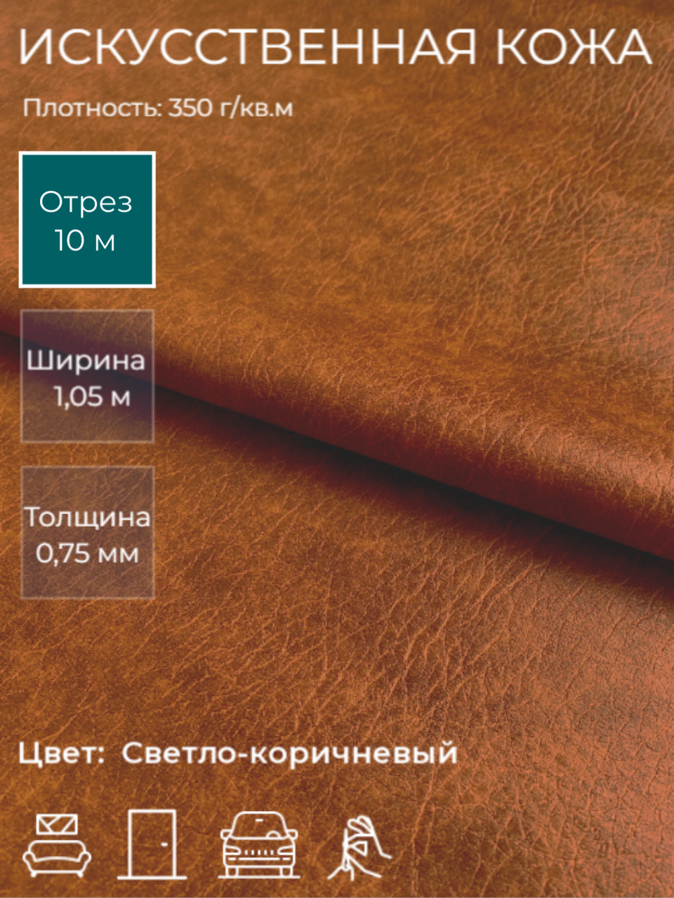 Экокожа, искусственная кожа для рукоделия, мебели, двери, интерьера . Кожзам Отрез 10м, Ширина 1,05м, Плотность: 350 г/кв. м. Цвет: Светло-коричневый: сравнение цен, характеристики, фото, актуальное наличие и цены.