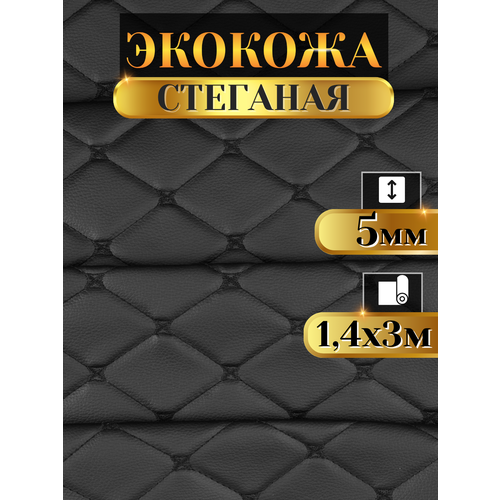 Экокожа стеганая прошитая Бабочка цвет черный с черной ниткой длина 3м ширина (140см), кожа стеганная для авто на поролоне для перетяжки салона, дверей и мебели: сравнение цен, характеристики, фото, актуальное наличие и цены.