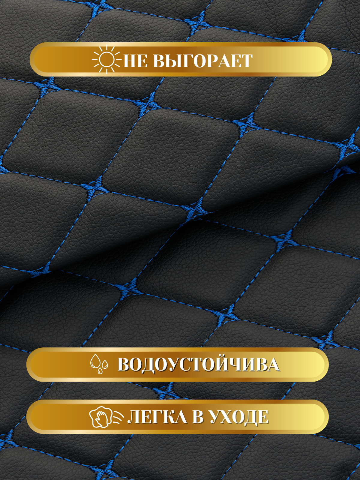 Купить Экокожа стеганая прошитая Бабочка цвет черный с синей ниткой длина 1м ширина (140см), кожа стеганная для авто на поролоне для перетяжки салона, дверей и мебели с доставкой по всей России.
