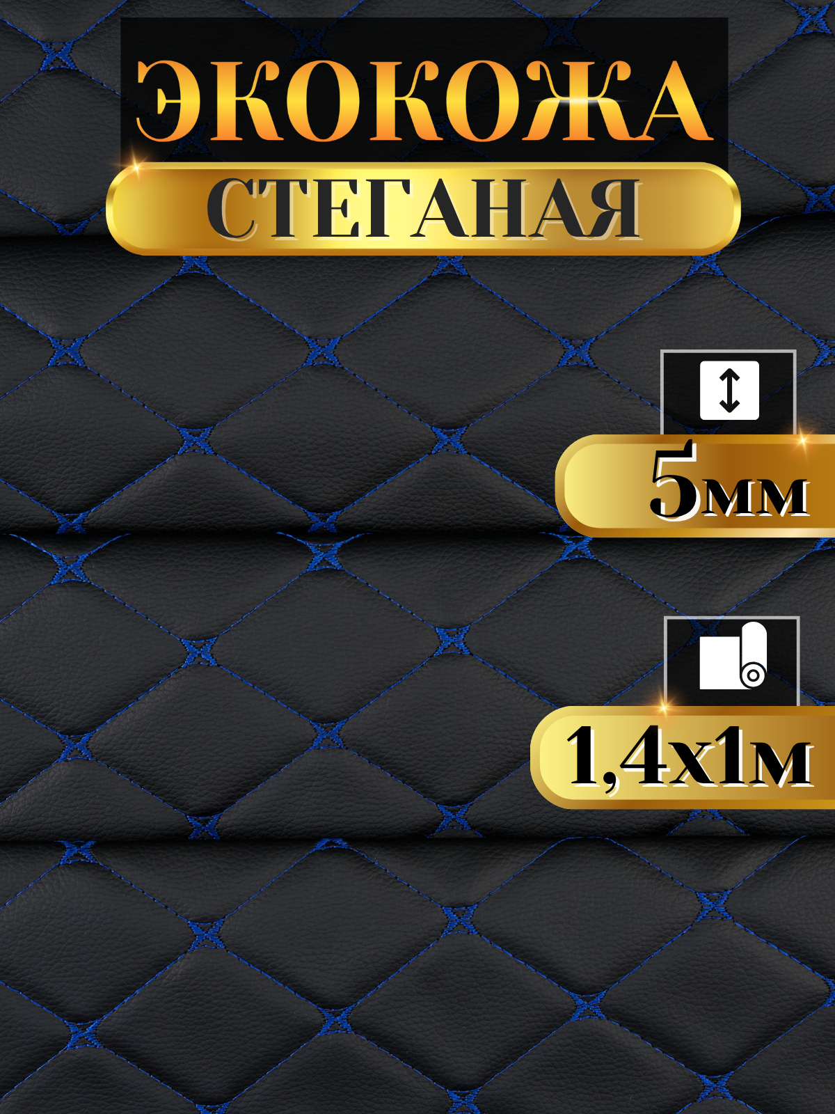 Экокожа стеганая прошитая Бабочка цвет черный с синей ниткой длина 1м ширина (140см), кожа стеганная для авто на поролоне для перетяжки салона, дверей и мебели: сравнение цен, характеристики, фото, актуальное наличие и цены.