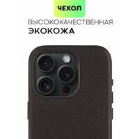 Купить Экокожаный чехол BROSCORP на Apple iPhone 15 Pro (Айфон 15 Про), искусственная кожа, черный с доставкой по всей России.