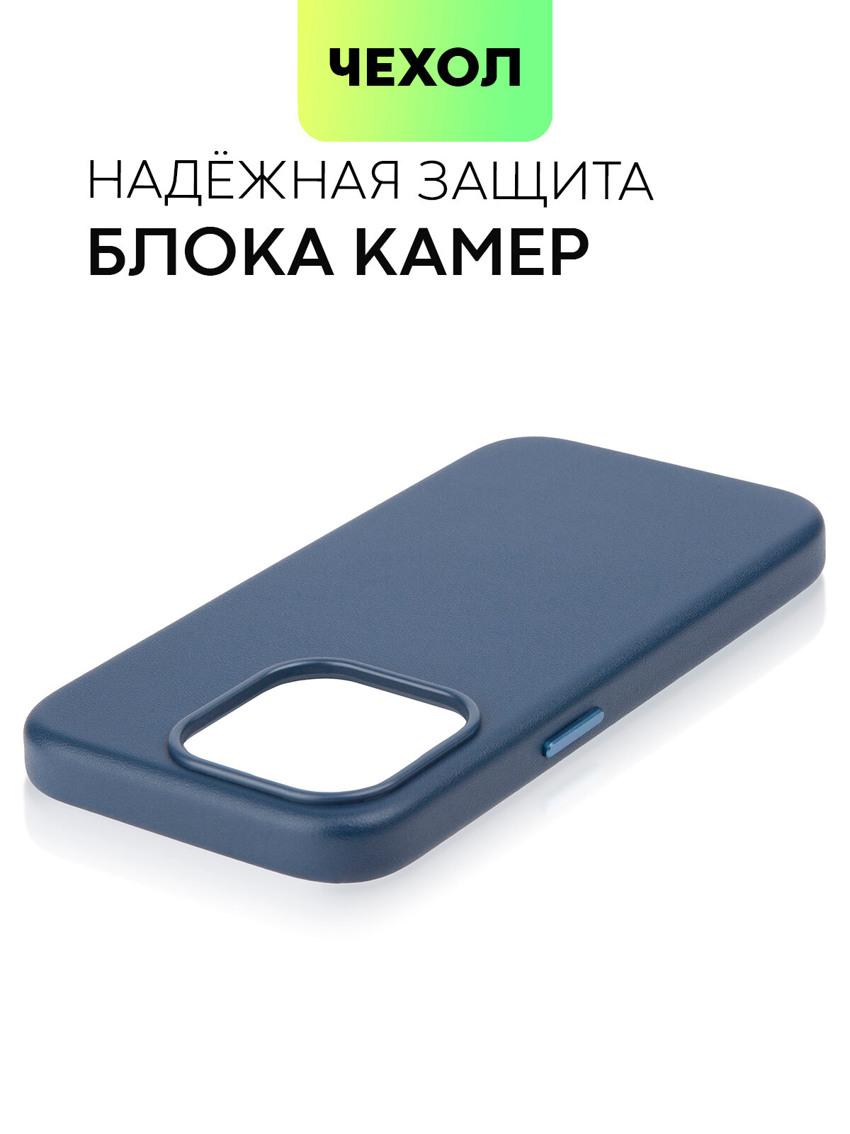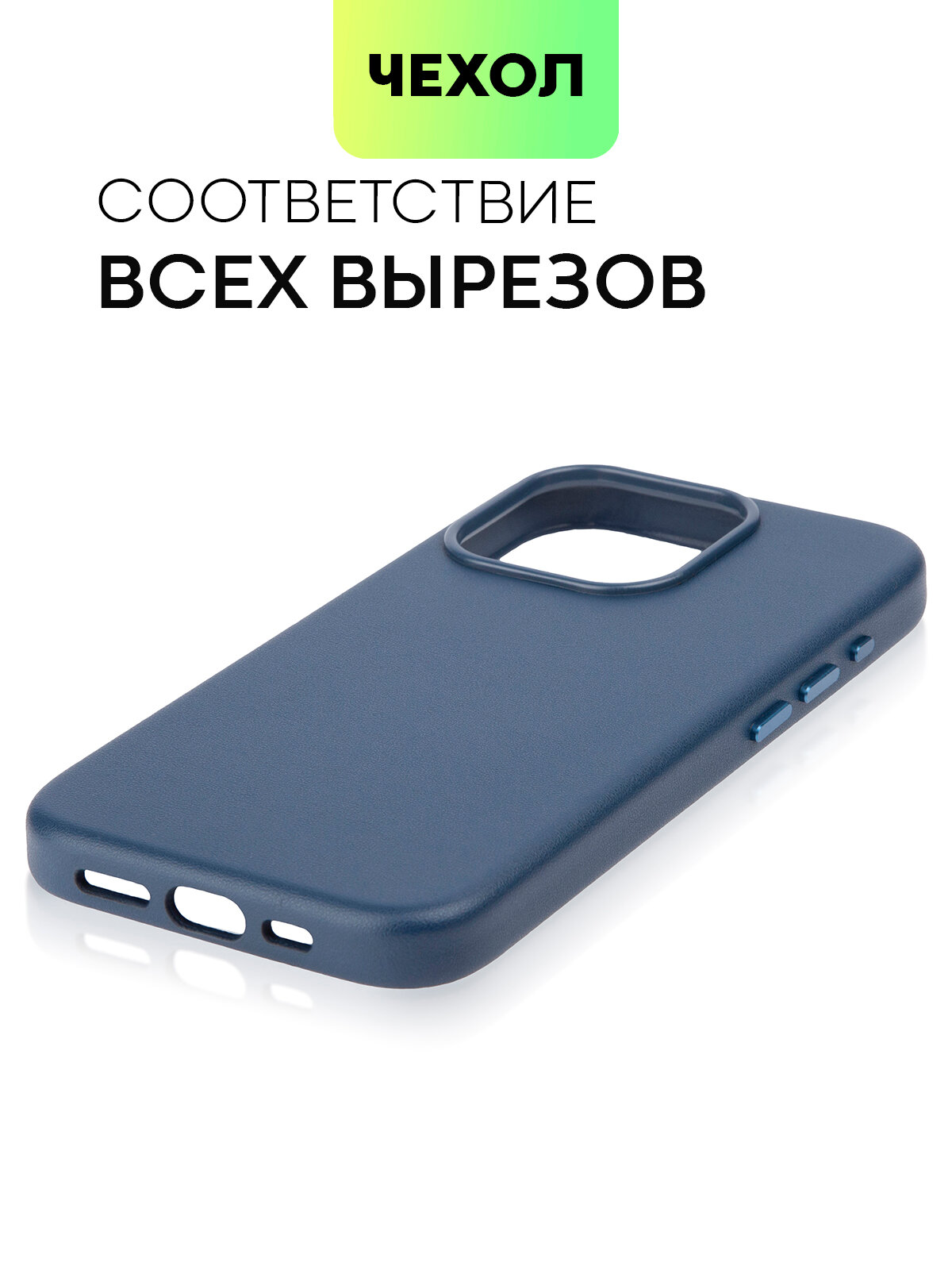Экокожаный чехол BROSCORP на Apple iPhone 15 Pro (Айфон 15 Про), искусственная кожа, синий: сравнение цен, характеристики, фото, актуальное наличие и цены.