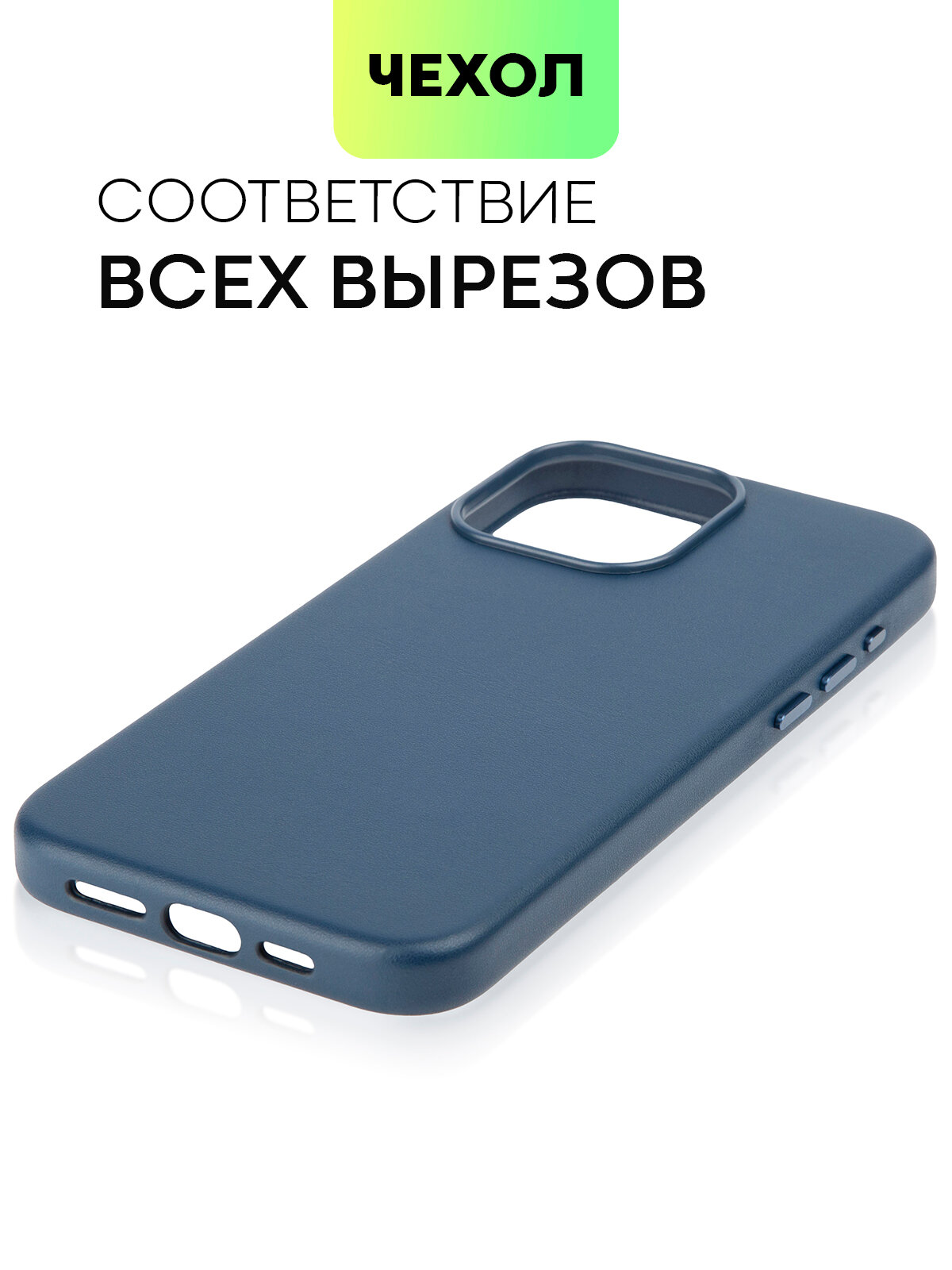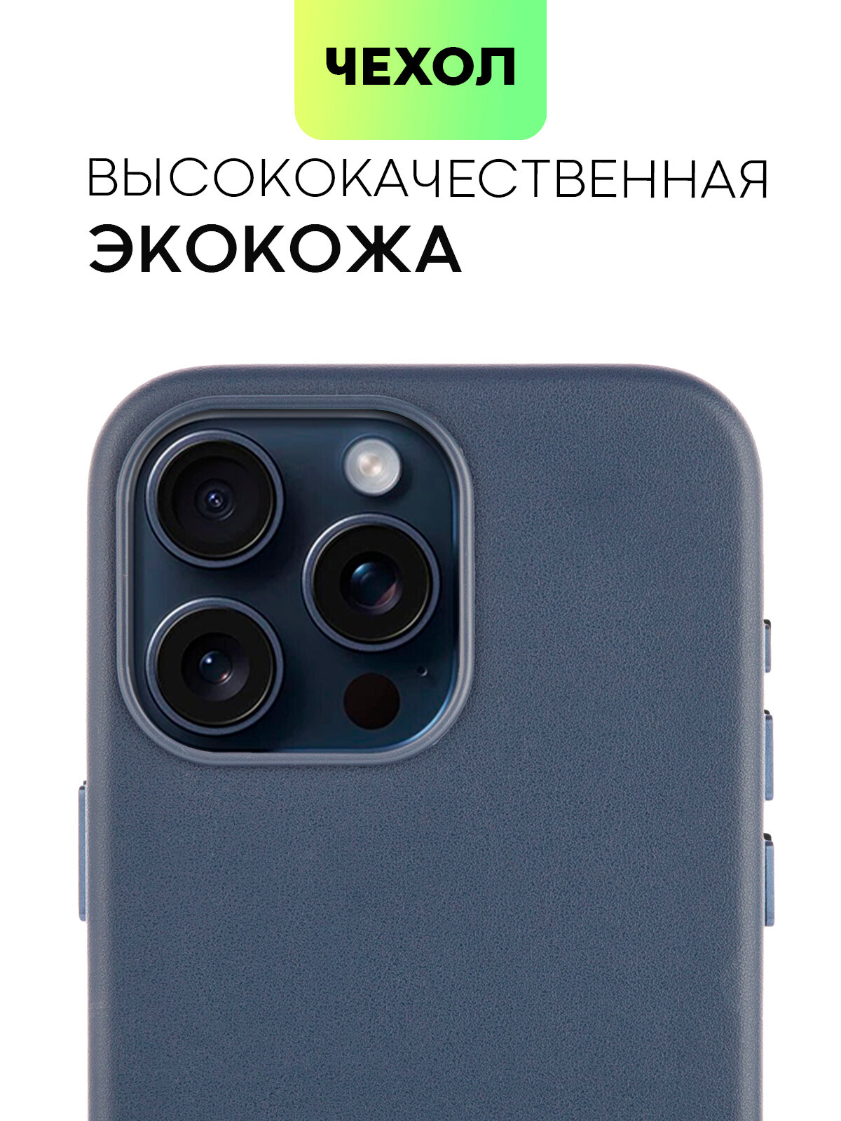 Экокожаный чехол BROSCORP на Apple iPhone 15 Pro Max (Айфон 15 Про Макс), искусственная кожа, синий: сравнение цен, характеристики, фото, актуальное наличие и цены.