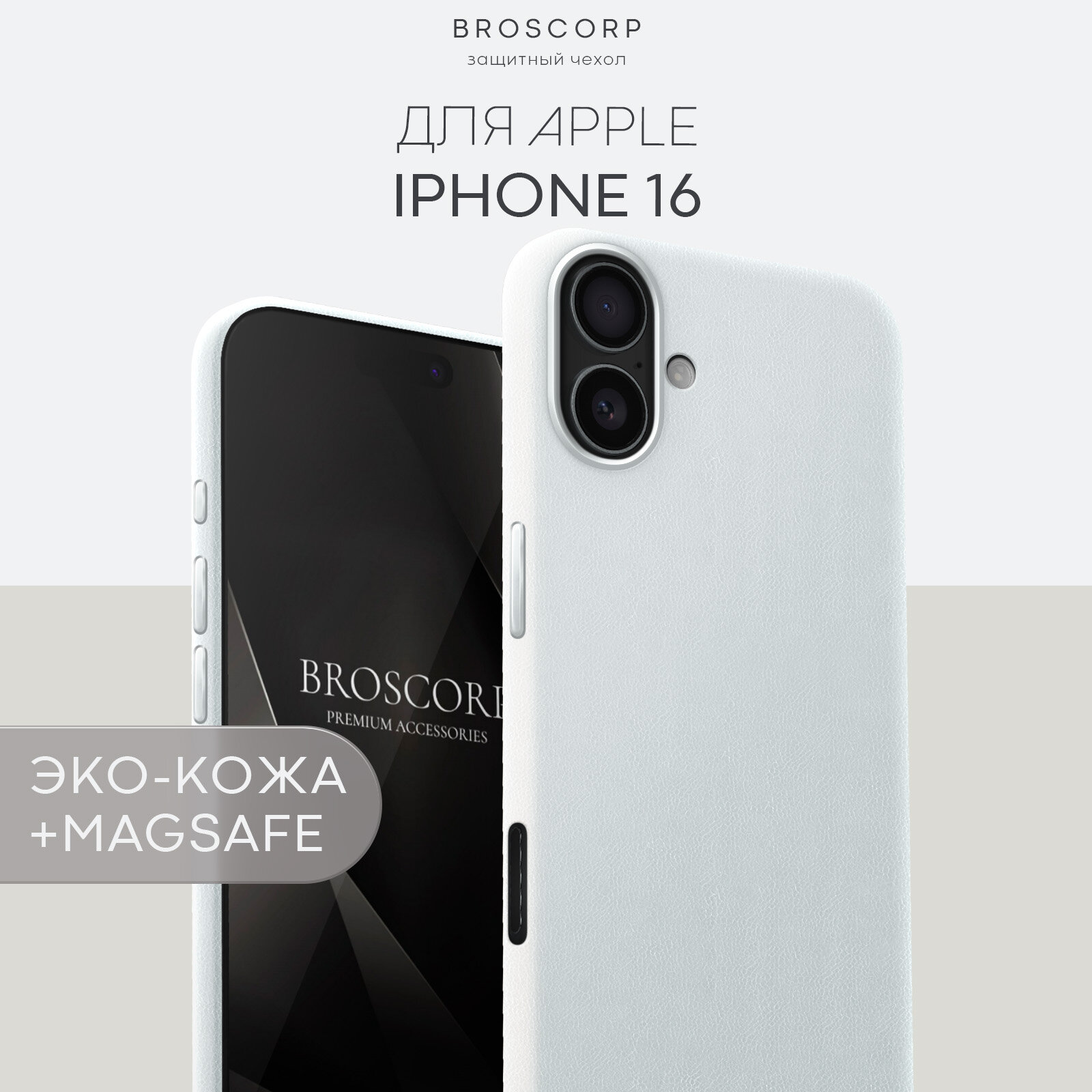 Купить Экокожаный чехол Broscorp на Apple iPhone 16 (Айфон 16), искусственная кожа, белый с доставкой по всей России.