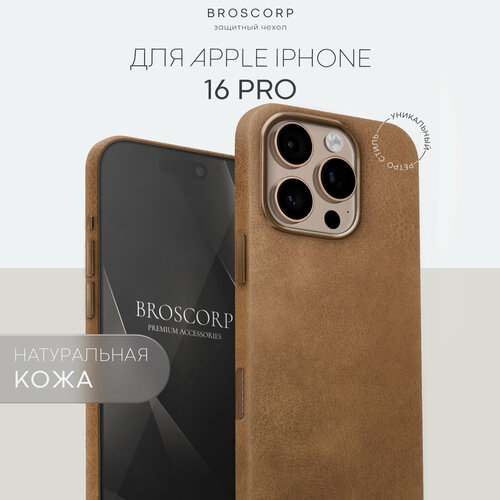 Купить Экокожаный чехол BROSCORP на Apple iPhone 16 Pro (Айфон 16 Про), искусственная кожа, песочный с доставкой по всей России.