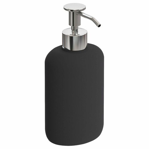 Дозатор изготовлен из каменной керамики, что обеспечивает его прочность и долговечность. Цветная глазурь и полиуретановая краска придают аксессуару стильный темно-серый оттенок.