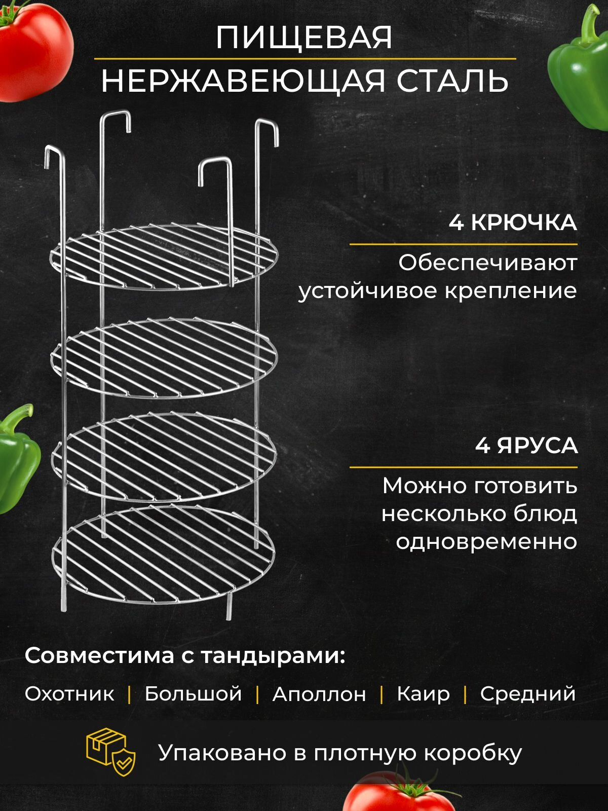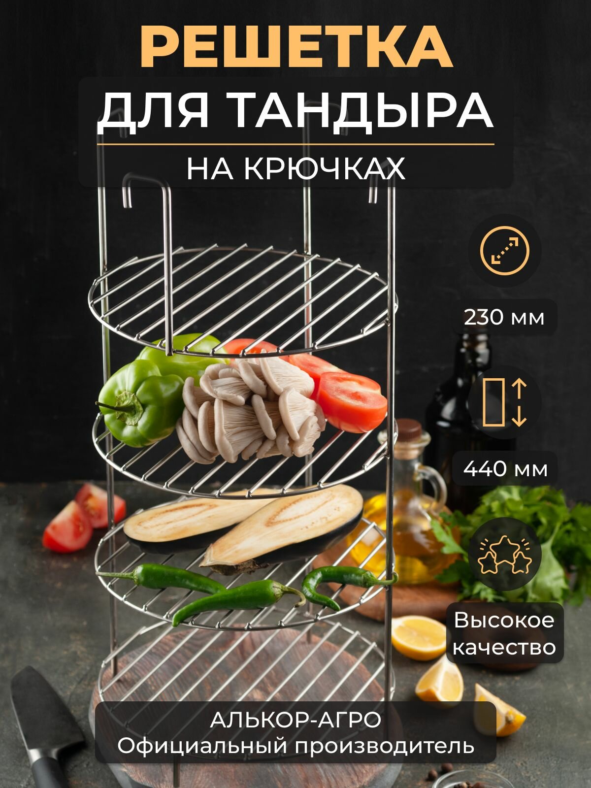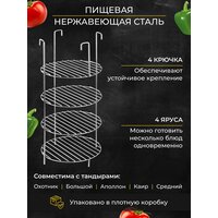 Советуем обратить внимание на чудо аксессуар - этажерку. По опыту скажем, “Этажерка” для тандыра станет незаменимым помощником в приготовлении большинства вкуснейших блюд. На тандырной сетке можно приготовить максимальное количество блюд, например куриных крылышек с овощами или же заложить большой кусок мяса, вашим фантазиям нет предела!) Мясные продукты можно приготовить для большой компании всего за один этап.