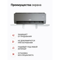 Для монтажа конструкции не требуется участие специалистов. Монтаж одного экрана занимает до 5 минут Легко снимается и ставится на место, не создавая проблем для сервисных служб Не препятствует работе пульта дистанционного управления и температурного датчика кондиционера
