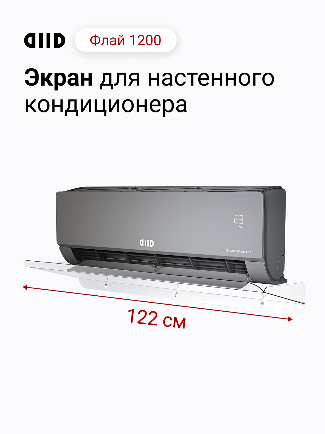 Защитный экран для настенного кондиционера DIID Флай подойдёт для любой модели настенного кондиционера шириной до 120 сантиметров включительно