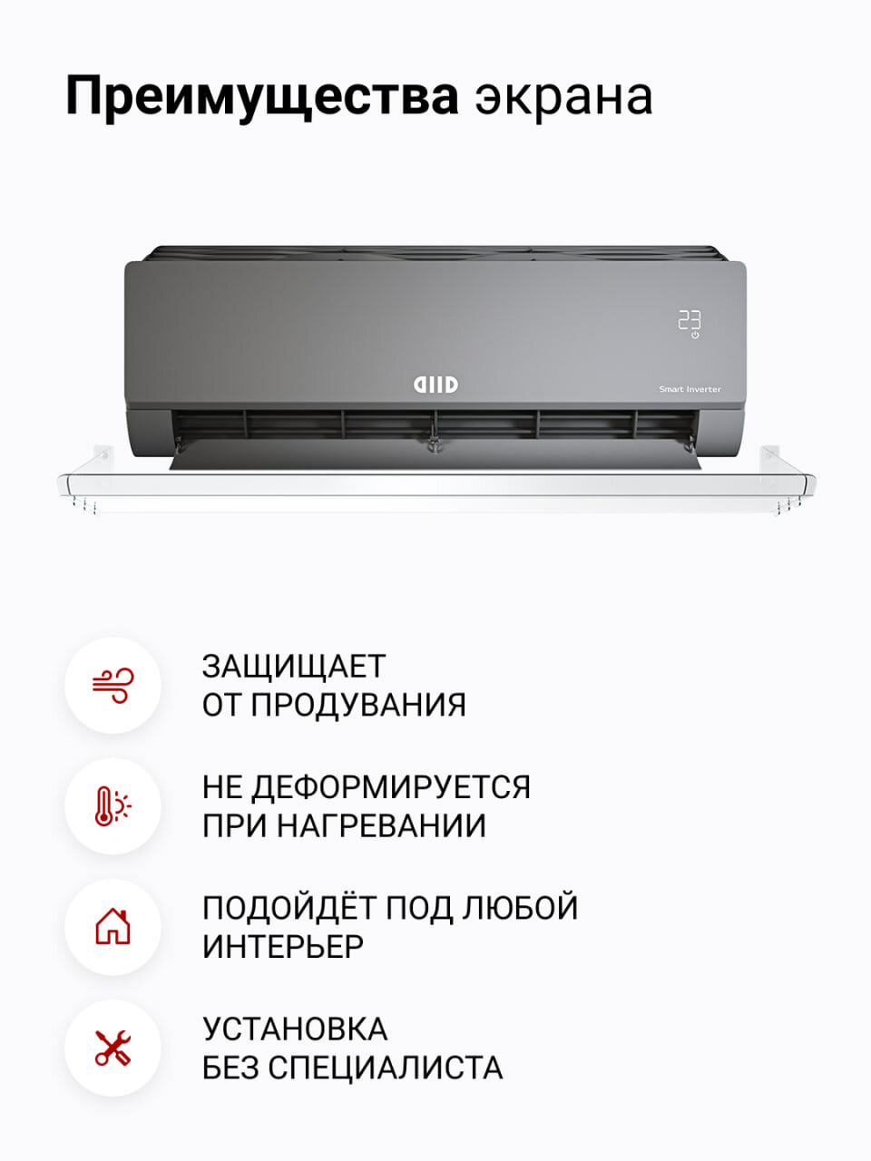 Защитный экран для настенного кондиционера DIID Сплит подойдёт для любой модели настенного кондиционера шириной до 70 сантиметров
