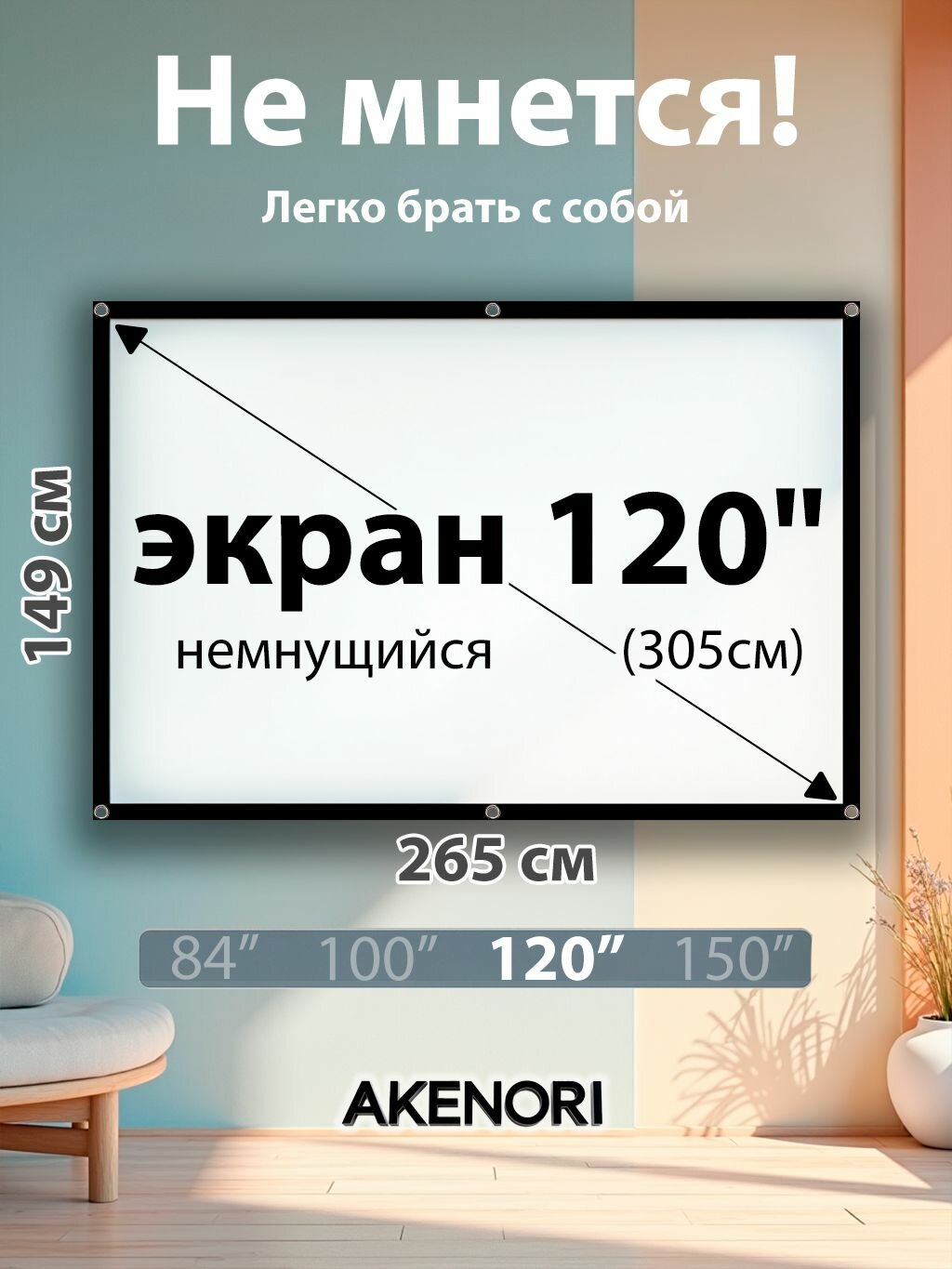 Экран для проектора 120 дюймов 304см не мнущийся, белый с кольцами и крюками для темных стен (формат 4:3 и 16:9): сравнение цен, характеристики, фото, актуальное наличие и цены.