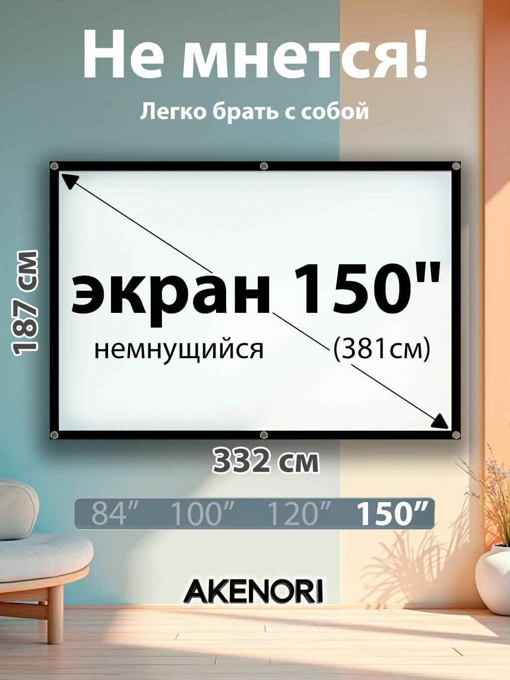 Экран для проектора 150 дюймов 380см не мнущийся, белый с кольцами и крюками для темных стен (формат 4:3 и 16:9): сравнение цен, характеристики, фото, актуальное наличие и цены.