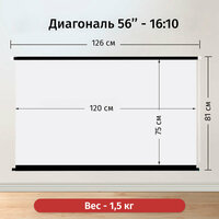 Экран для проектора Лама рулонный 120×75 см, формат 16:10, диагональ 56″: сравнение цен, характеристики, фото, актуальное наличие и цены.
