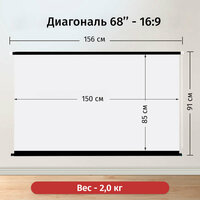 Экран для проектора Лама рулонный 150×85 см, формат 16:9, диагональ 68″: сравнение цен, характеристики, фото, актуальное наличие и цены.