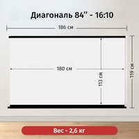 Экран для проектора Лама рулонный 180×113 см, формат 16:10, диагональ 84″: сравнение цен, характеристики, фото, актуальное наличие и цены.