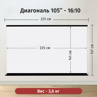 Экран для проектора Лама рулонный 225×141 см, формат 16:10, диагональ 105″: сравнение цен, характеристики, фото, актуальное наличие и цены.