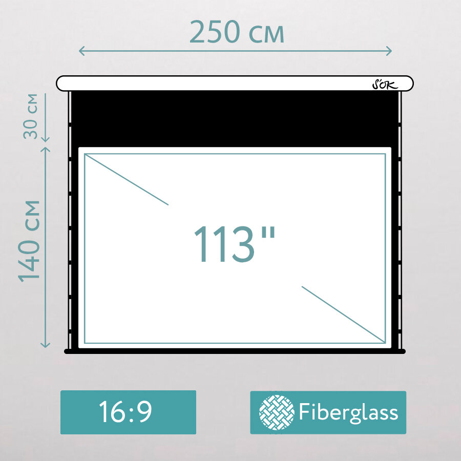 Экран для проектора SCPSMT-250x140FG-ED30 113 » 16:9 настенно-потолочный, моторизованный натяжением, белый: сравнение цен, характеристики, фото, актуальное наличие и цены.