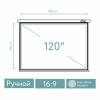Экран для проектора SOK SCPSW-266×150 120 16:9 настенно-потолочный, ручной, матовый, белый: сравнение цен, характеристики, фото, актуальное наличие и цены.