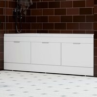 Белый экран из ламинированного МДФ одинаково подходит к акриловой, чугунной или стальной ванне. Защитная панель на ножках легко устанавливается и порадует долговечностью и надежностью фурнитуры. Крепкая цепочка выполнена из нержавеющей стали. В хромированном цвете она удачно сочетается с краном и смесителем для душа.