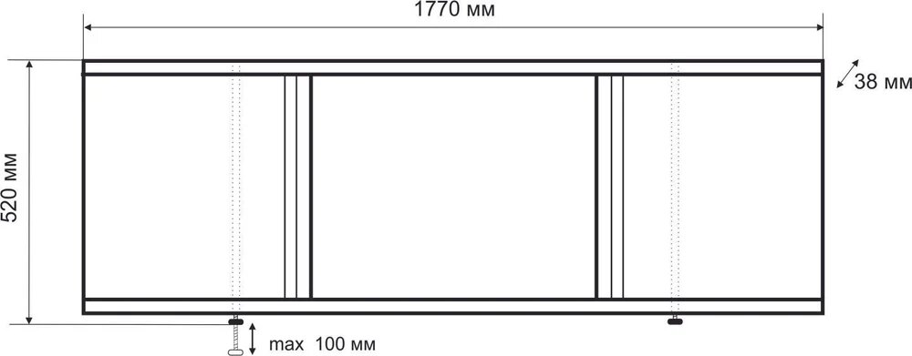 | Дополнительная информация | Высота экрана 560 мм+ножки 20 мм. Ножки регулируются на 100 мм. Вертикальные стойки смещены к центру, что позволяет при необходимости его подрезать (профиль) до нужного размера. Поставляется в собранном виде. Ножки прикреплены к профилю. |