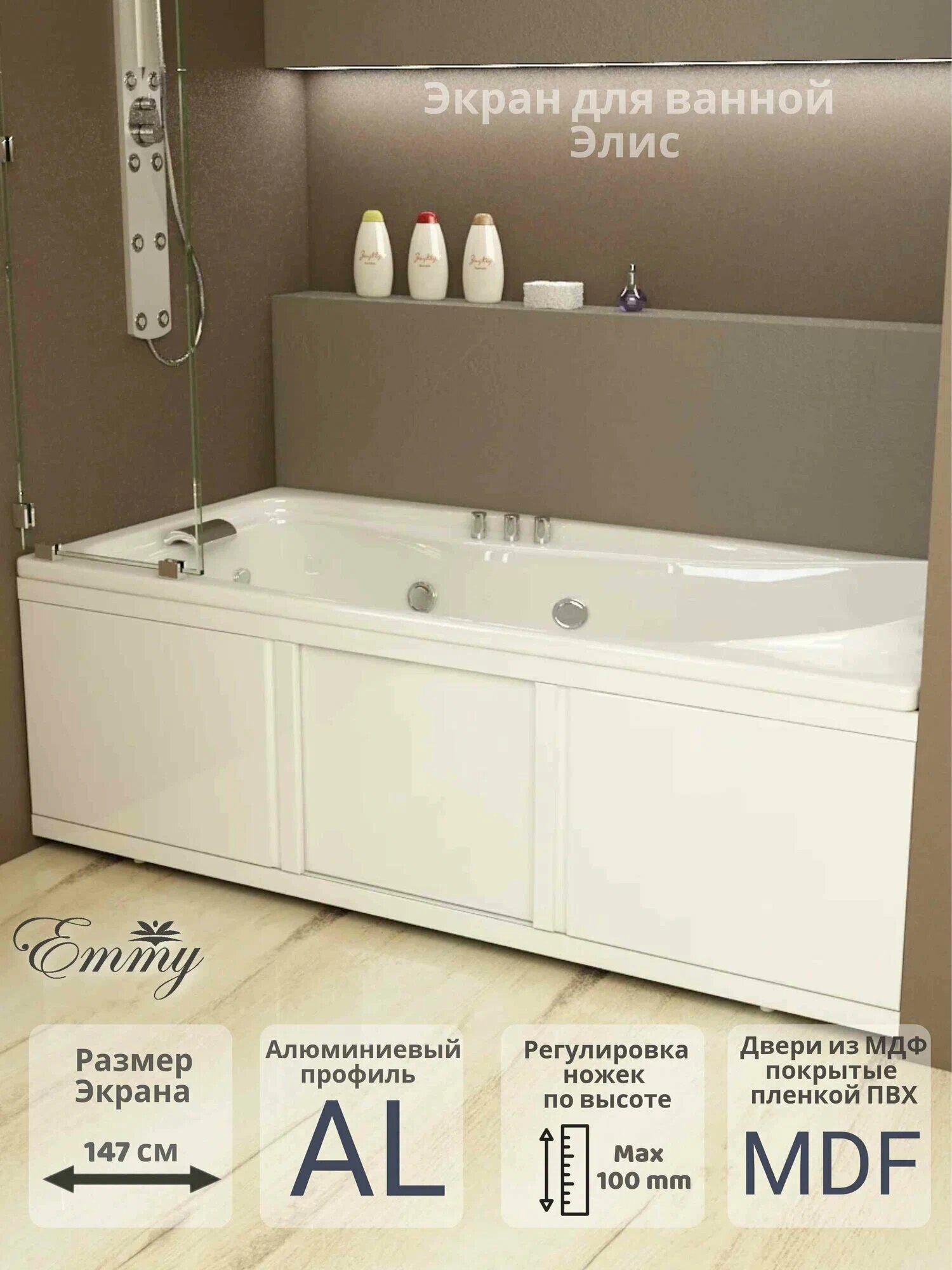 Экран Emmy «Соната 180» — это стильное и практичное решение для вашей ванной комнаты. Экран под ванну выполнен из качественных материалов, которые обеспечивают долговечность и надёжность конструкции. Каркас экрана изготовлен из прочного алюминиевого профиля, который окрашен порошковой краской белого цвета. Это придаёт экрану элегантный и современный вид, который гармонично впишется в любой интерьер. Дверки экрана изготовлены из МДФ и покрыты ПВХ-плёнкой толщиной 0,45 мм. Такое покрытие не только защищает дверки от влаги, но и придаёт им привлекательный внешний вид. Экран имеет 3 раздвижные створки с фрезированными ручками. Это обеспечивает удобный доступ к ванне и позволяет легко открывать и закрывать экран. Вертикальные стойки экрана смещены к центру, что позволяет при необходимости подрезать экран под размер вашей ванны. Это особенно удобно, если вы хотите установить экран на ванну нестандартной формы. Высота экрана составляет 500 мм, а ножки можно отрегулировать на 100 мм.