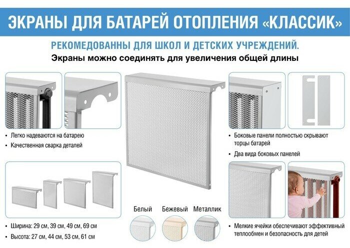 Экран на чугунный радиатор ZEIN, 290х610х150 мм, 3 секции, металлический, белый: сравнение цен, характеристики, фото, актуальное наличие и цены.