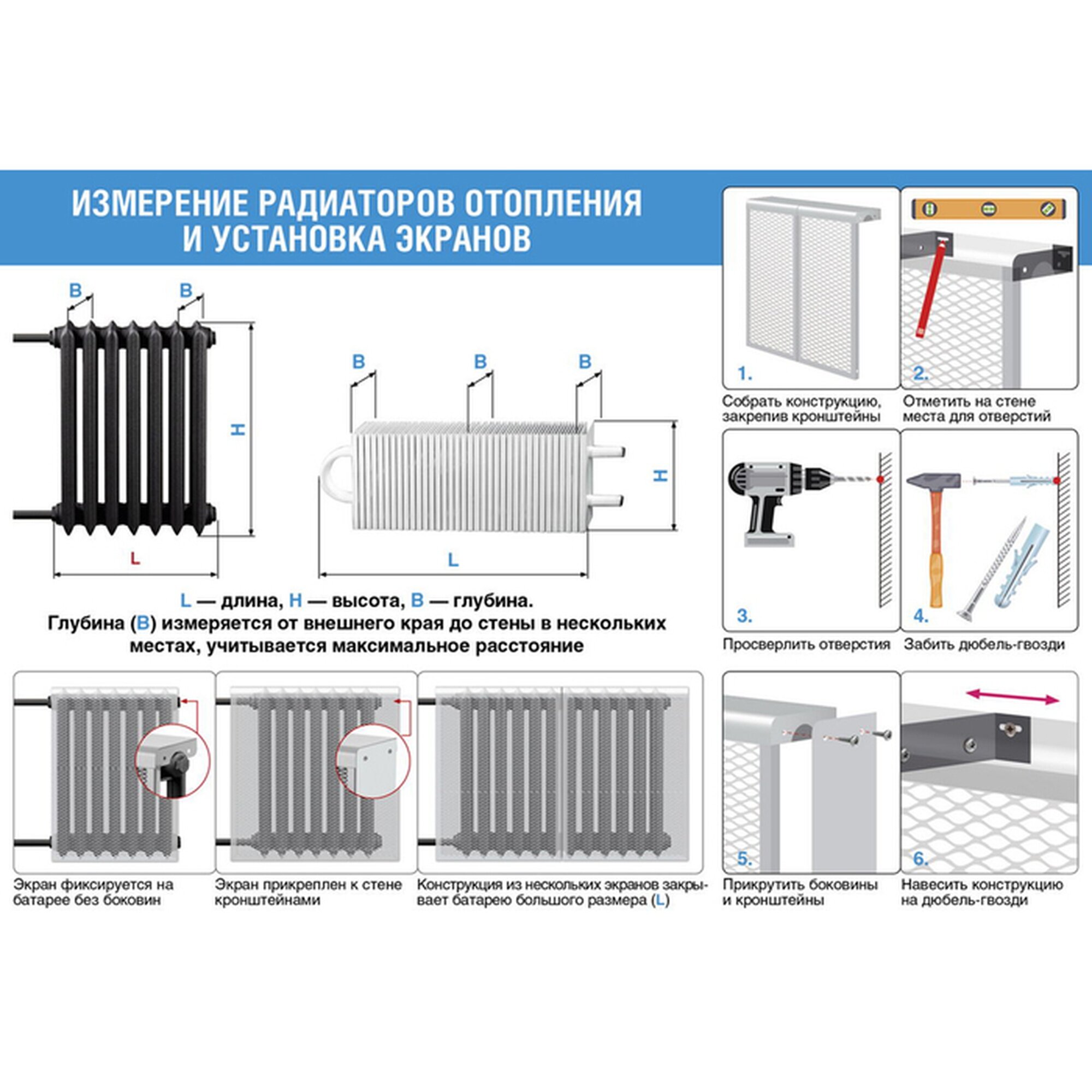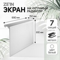 Экран на чугунный радиатор ZEIN, 690х610х150 мм, 7 секций, металлический, белый: сравнение цен, характеристики, фото, актуальное наличие и цены.