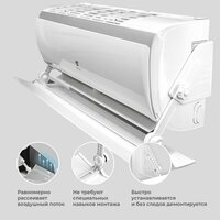 - Специальная конструкция позволяет регулировать как угол наклона экрана, так и его положение Не создает препятствий в работе температурного датчика, не блокирует сигнал пульта дистанционного управления. Сплит-система работает в привычном режиме.