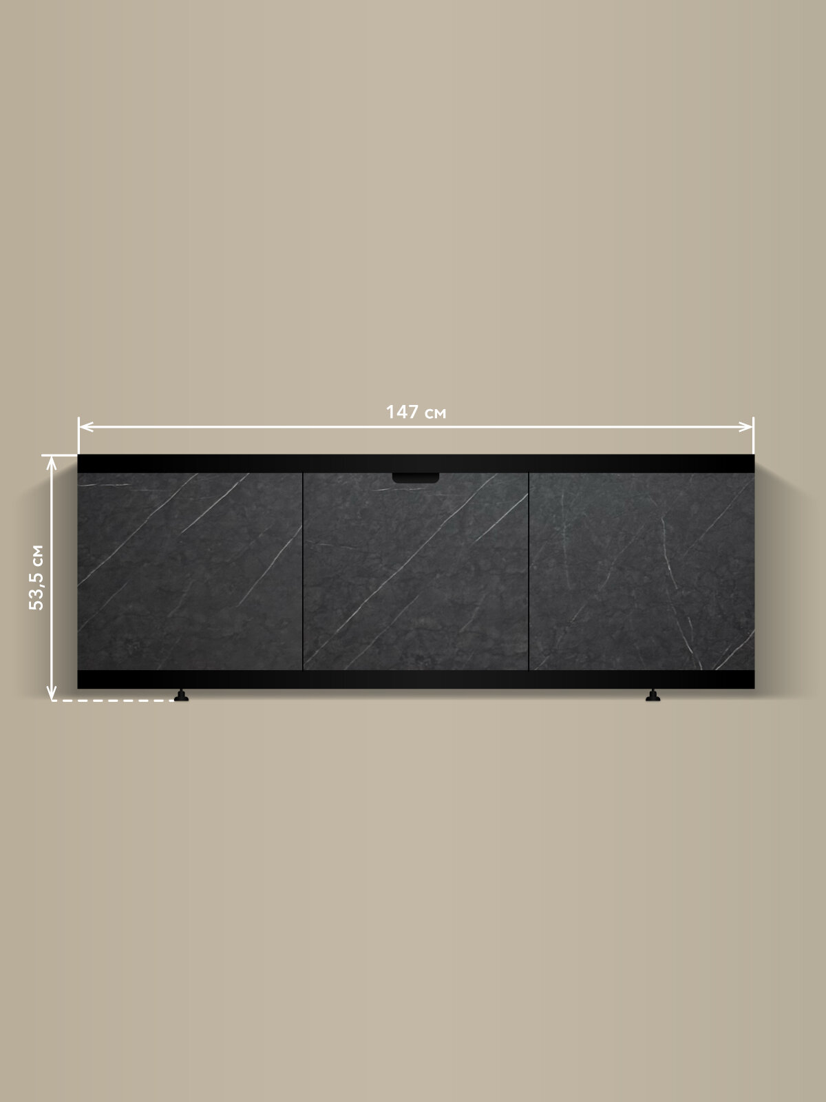 Купить Экран под ванну МДФ Rita Black 150 см черный мрамор, раздвижной на алюминиевом профиле, центральная дверь на магнитах с доставкой по всей России.