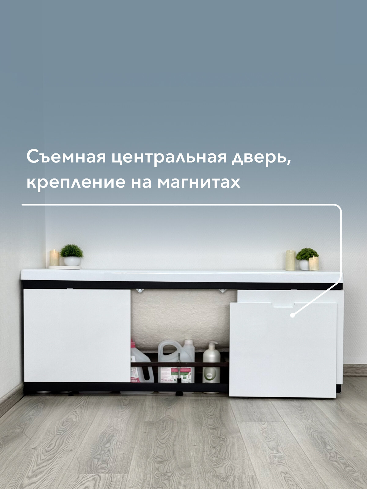 Экран под ванну МДФ Rita Black 170 см белый, раздвижной на алюминиевом профиле, центральная дверь на магнитах: сравнение цен, характеристики, фото, актуальное наличие и цены.