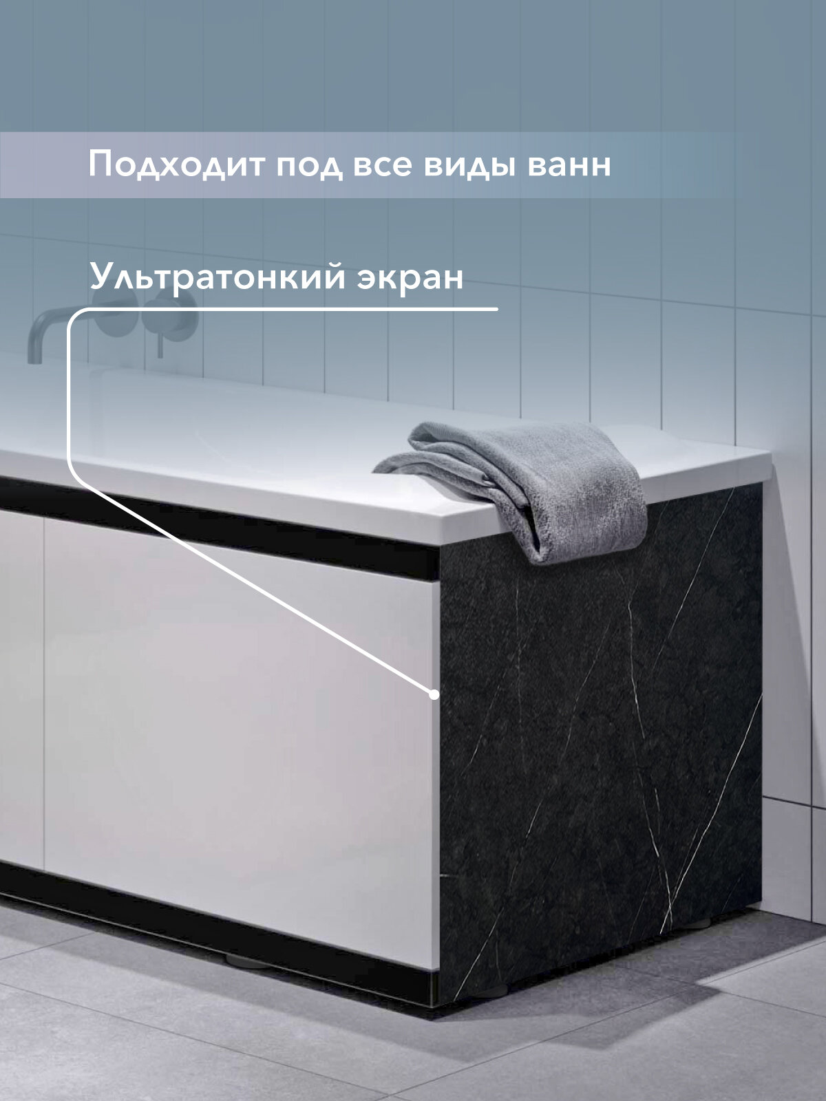 Купить Экран под ванну МДФ Rita Black 170 см белый, раздвижной на алюминиевом профиле, центральная дверь на магнитах с доставкой по всей России.