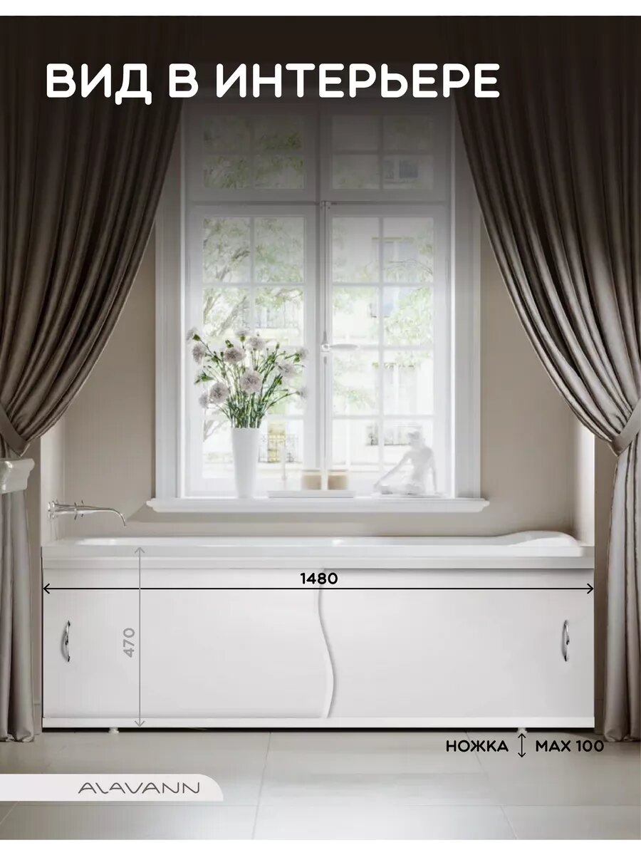 Купить Экран под ванну пластиковый Alavann Elit 150 см белый, раздвижной на алюминиевом профиле, 2 дверцы с доставкой по всей России.