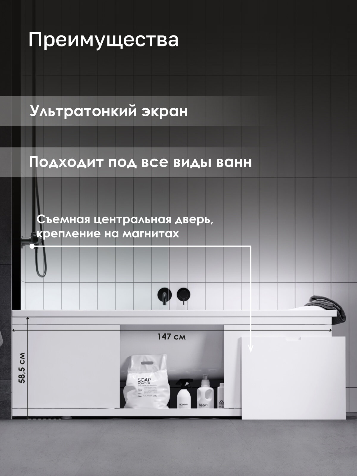 Экран под ванну Rita Plus 150 см раздвижной (купе), из МДФ, белый: сравнение цен, характеристики, фото, актуальное наличие и цены.