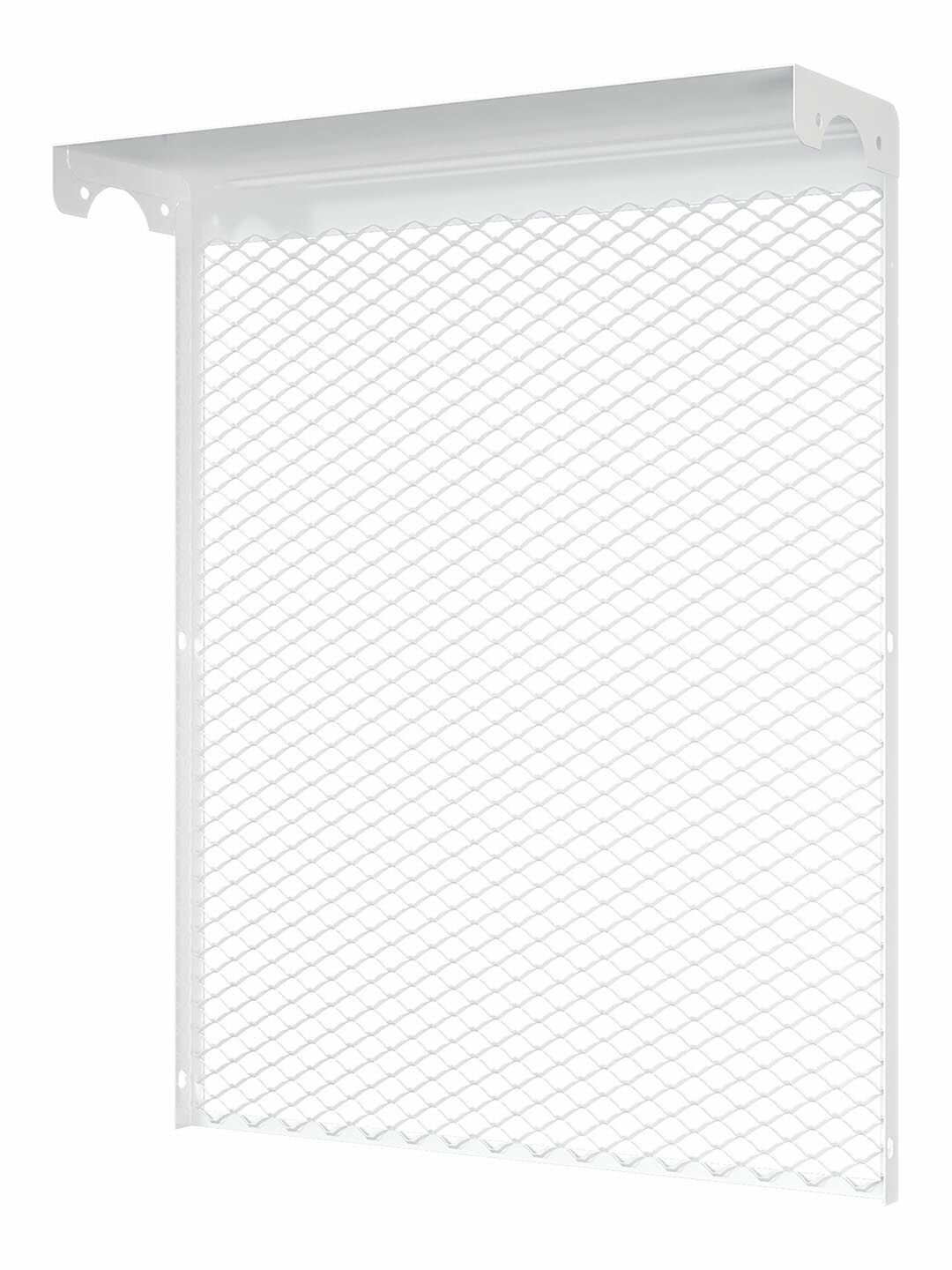 соответствует стандартной ширине 5 секций радиатора отопления; изготовлен из стали толщиной 0,7 мм с наполнением цельнометаллической просечно-вытяжной сеткой; размер ячейки – 13х25х3мм; возможно соединение экранов для монтажа на радиатор нестандартного размера (предусмотрены соединительные отверстия ⌀8мм)