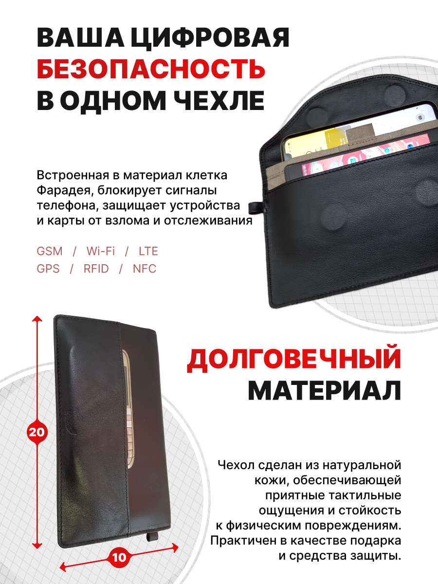 Экранированный чехол на телефон. Двойная экранирующая защита. Блокировка мессенджеров. Кожаный черный конверт: сравнение цен, характеристики, фото, актуальное наличие и цены.