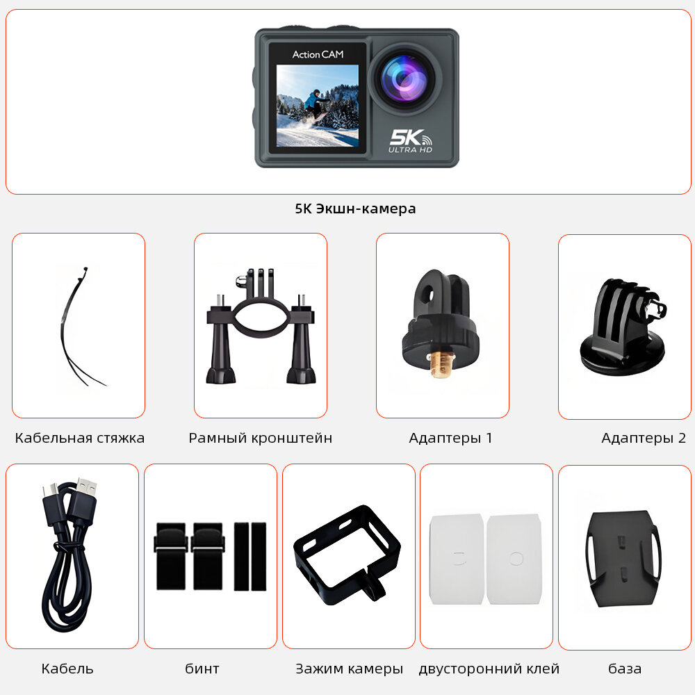 Экшн-камера 5K, 2 «IPS Сенсорный экран, 4-кратный зум, 30 М, Водонепроницаемый, Wi-Fi: сравнение цен, характеристики, фото, актуальное наличие и цены.