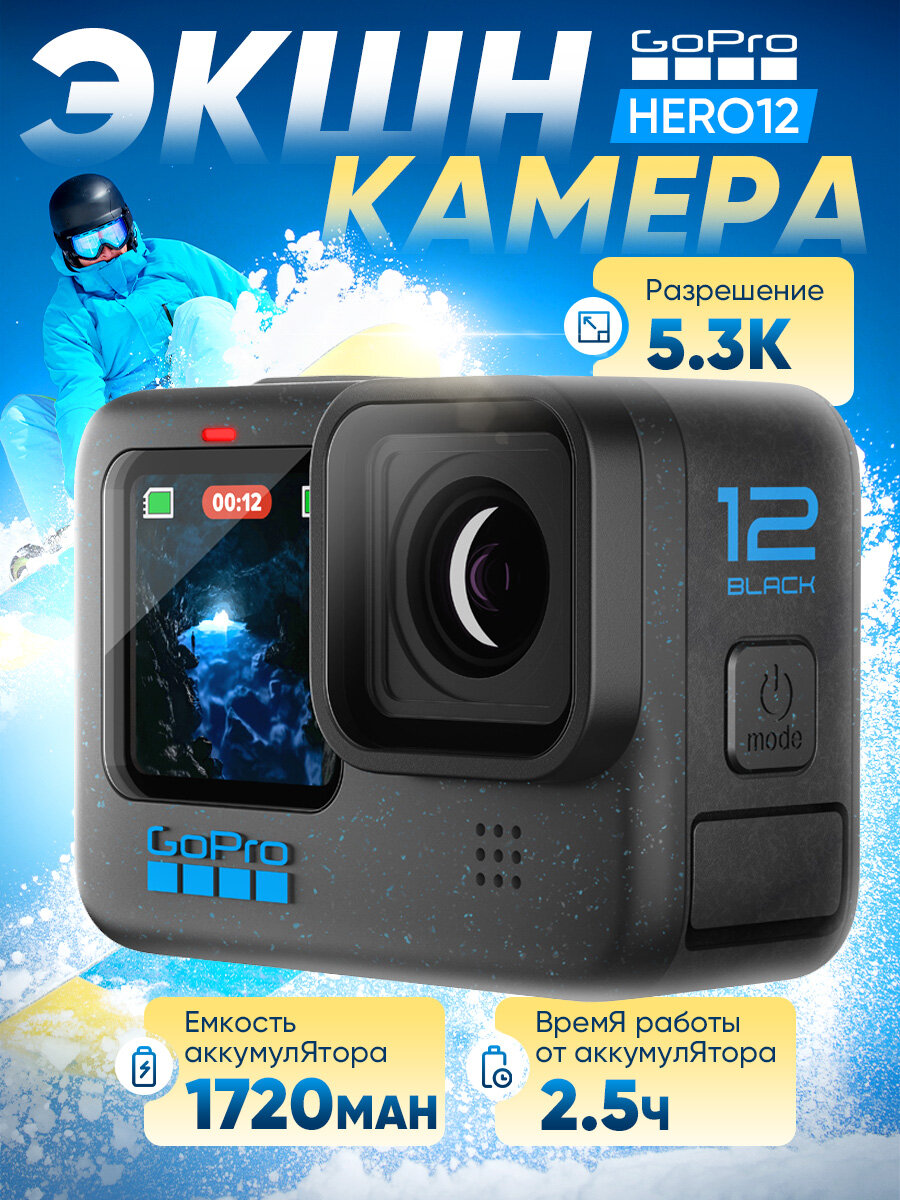Купить Экшн-камера GoPro HERO12 Black, стабилизация 6.0, 1720 мА·ч, черный с доставкой по всей России.