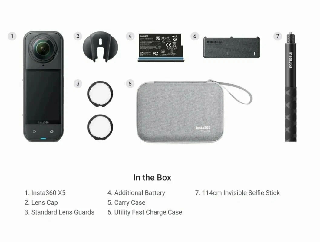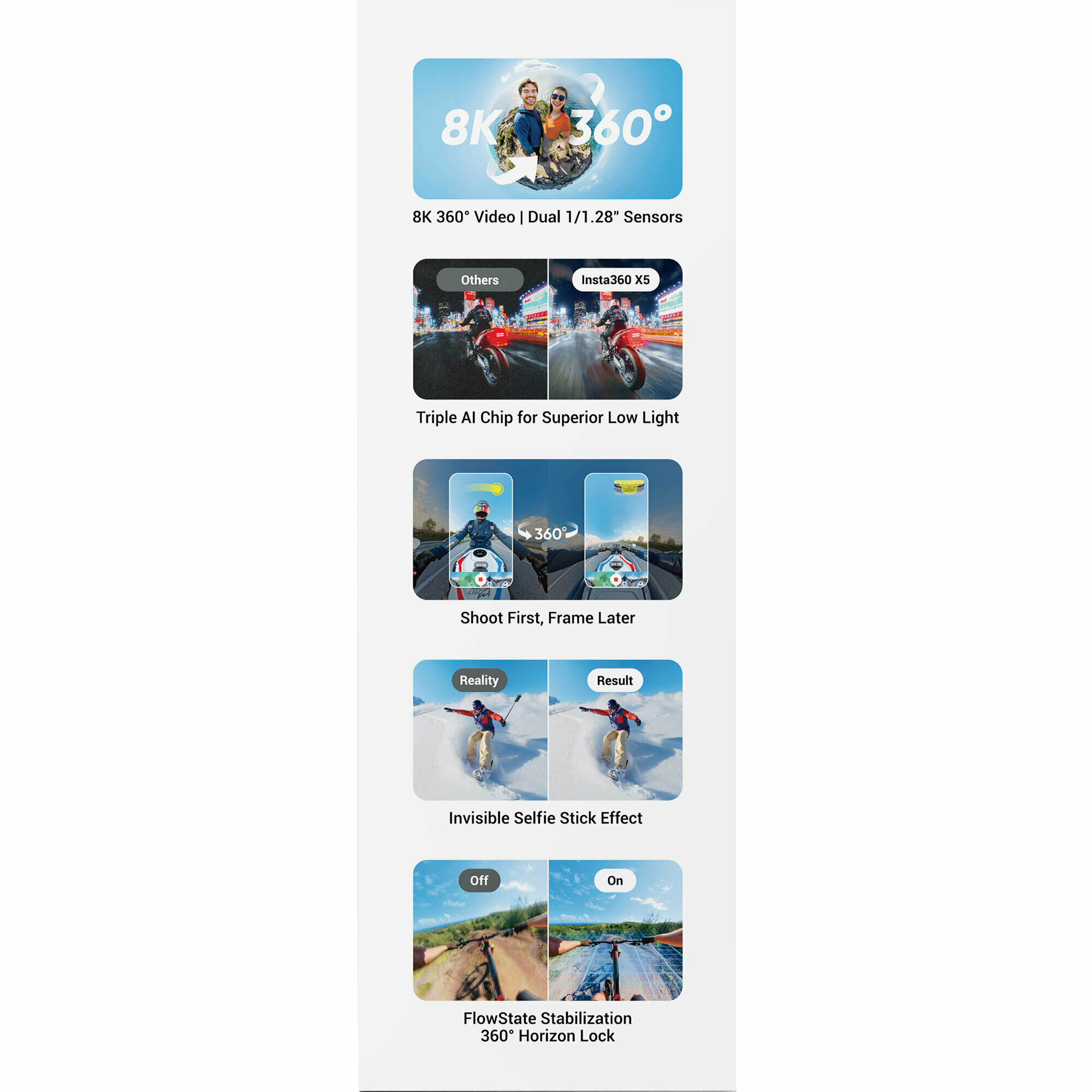 Экшн-камера Insta360 X5 Essentials Bundle , водонепроницаемая, 360° 8К, 72 МП, 4К60 fps, HDR: сравнение цен, характеристики, фото, актуальное наличие и цены.