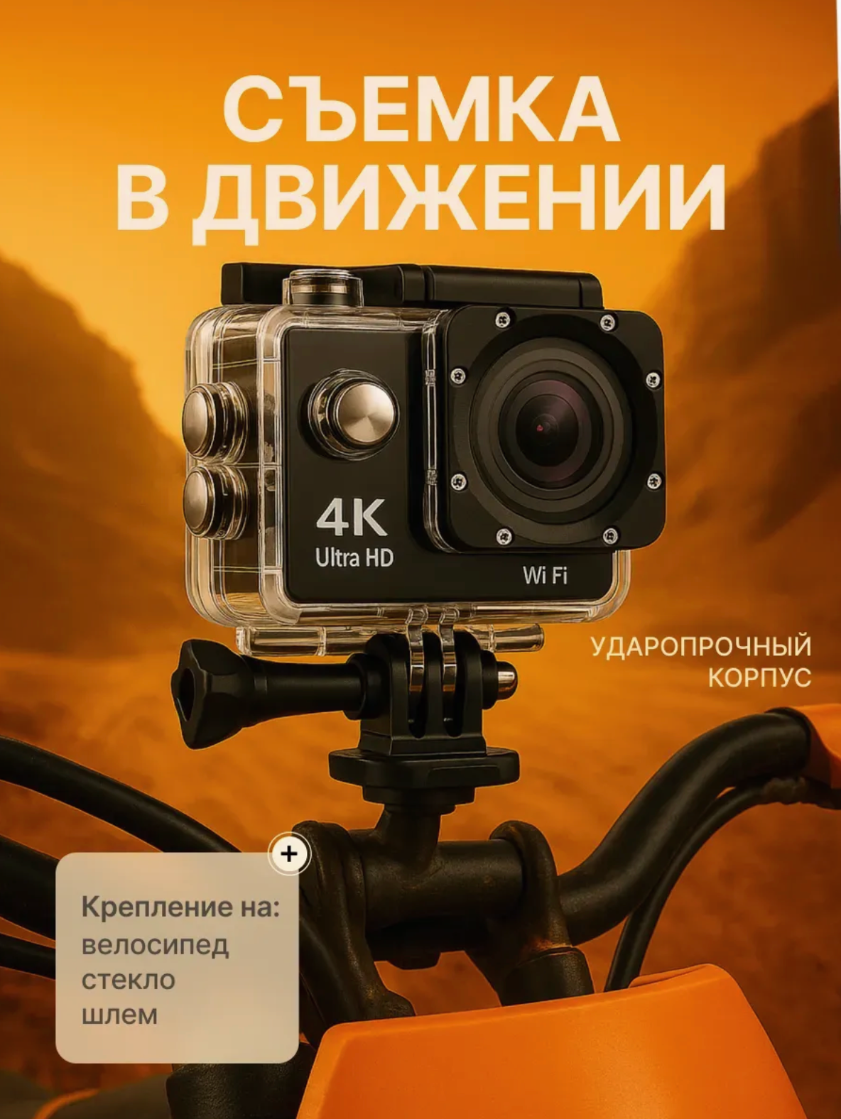Купить Экшн-камера Kosmo.Store, 4К, функция Wi-Fi, водонепроницаемая, с креплением Гоу Про с доставкой по всей России.