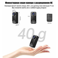 | Дополнительная информация | Шестиосевая гироскопическая стабилизация изображения; Максимальная глубина погружения 5 м (без аквабокса), 30 м (в аквабоксе); дистанционное управление со смартфона в приложении SJCAM Zone или браслета SJCAM remote control; Wi-Fi 2,4 ГГц / 5 ГГц |