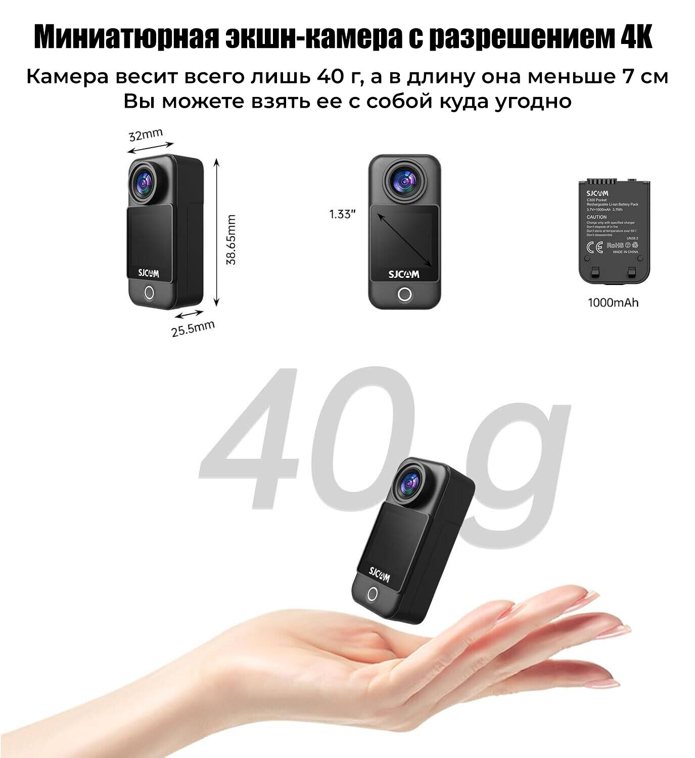 Карманная Экшн-камера SJCAM C300 4K FHD с длительным временем автономной работы видео водонепроницаемость 30 м 5G Wi-Fi Камера спортивная Экшн-камера