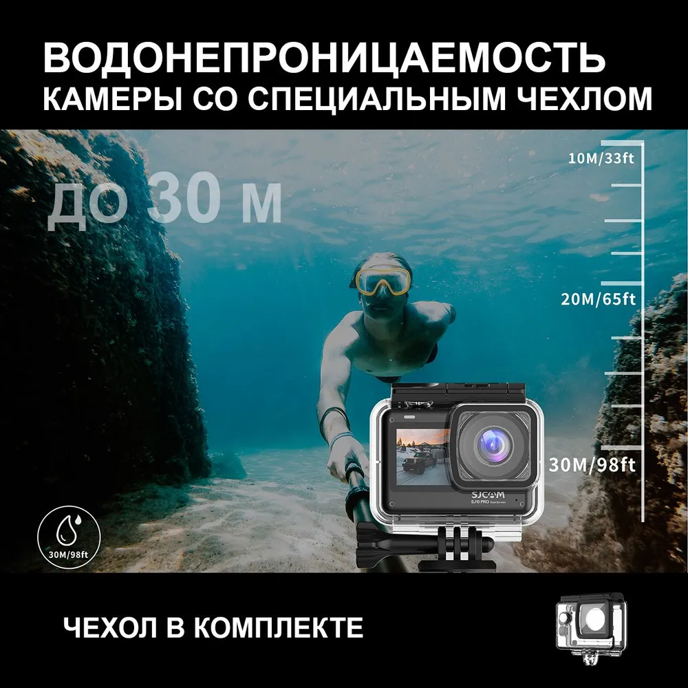 Купить Экшн камера SJCam SJ10 Pro черная с креплением, цифровым стабилизатором, водонепроницаемая 4K Ultra HD с доставкой по всей России.