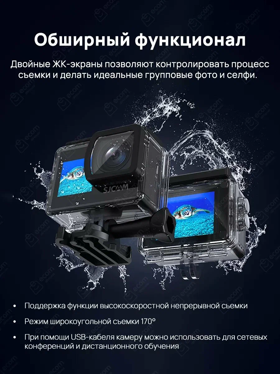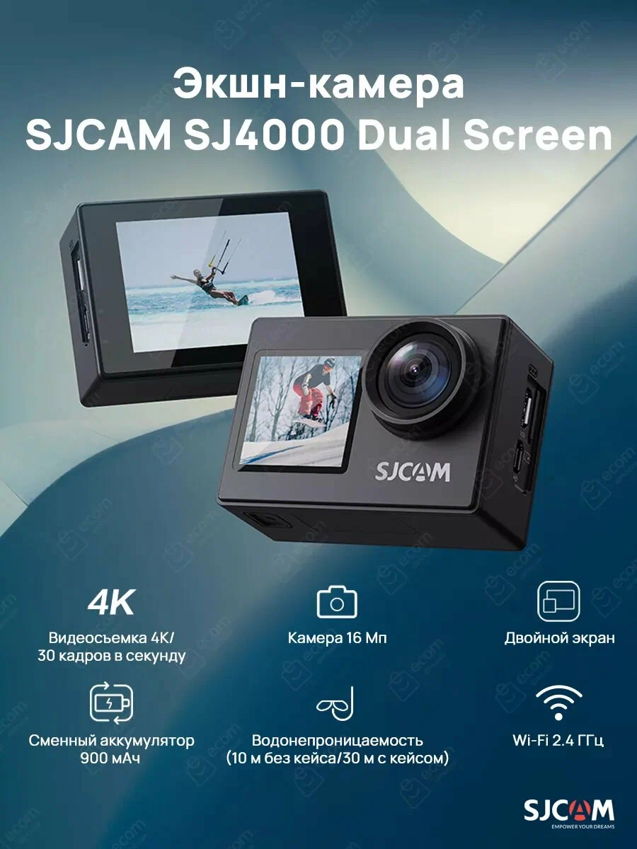 Купить Экшн камера SJCAM SJ4000 Dual Screen Black, с картой памяти 64 ГБ, с креплением, водонепроницаемая 4K Ultra HD с доставкой по всей России.