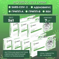 Экспресс тест ОРВИ ( 7 комплектов) на 5 вирусов : Ковид-19, Грипп А и В, Аденовирус, Респираторно-синцитиальный вирус (RSV): сравнение цен, характеристики, фото, актуальное наличие и цены.